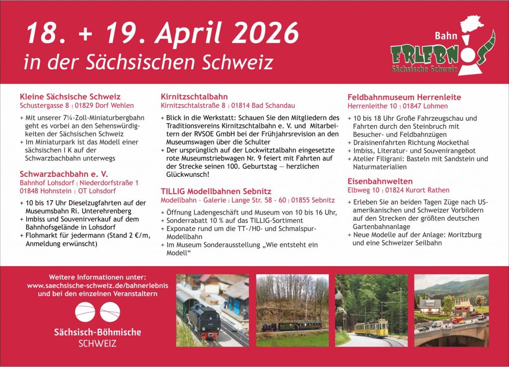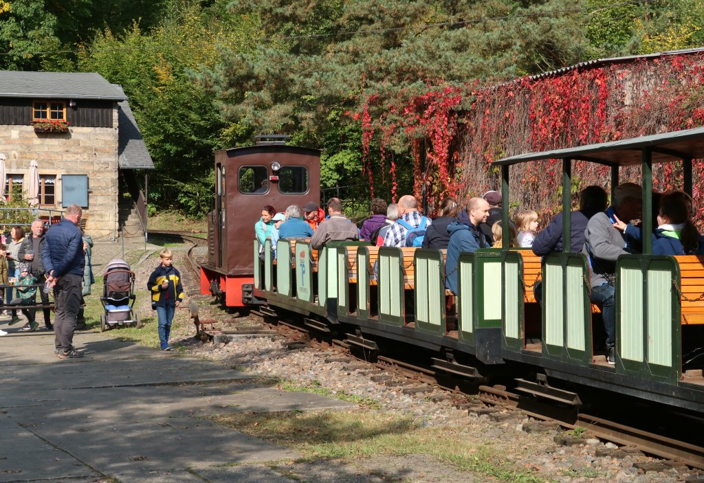 Vom 3. bis 5. Oktober fand unsere große Herbstausstellung statt. Bei teilweise wunderschönem Herbstwetter waren nochmal eine ganze Reihe Fahrzeuge im Einsatz zu erleben bzw. konnten in den verschiedenen Ausstellungsbereichen besichtigt werden. Hervorzuheben waren auch die große Modellbahnanlage auf 45-mm-Spur mit Echtdampfmodellen sowie die Fahrten mit der Regelspurdraisine auf der Strecke nach Mockethal.