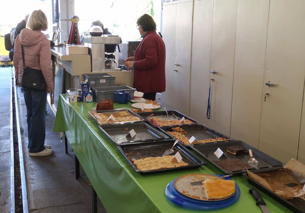 Leckeren selbstgebackenen Kuchen gab es in der Museumshalle. Foto: M. Otto, 3.10.2025.