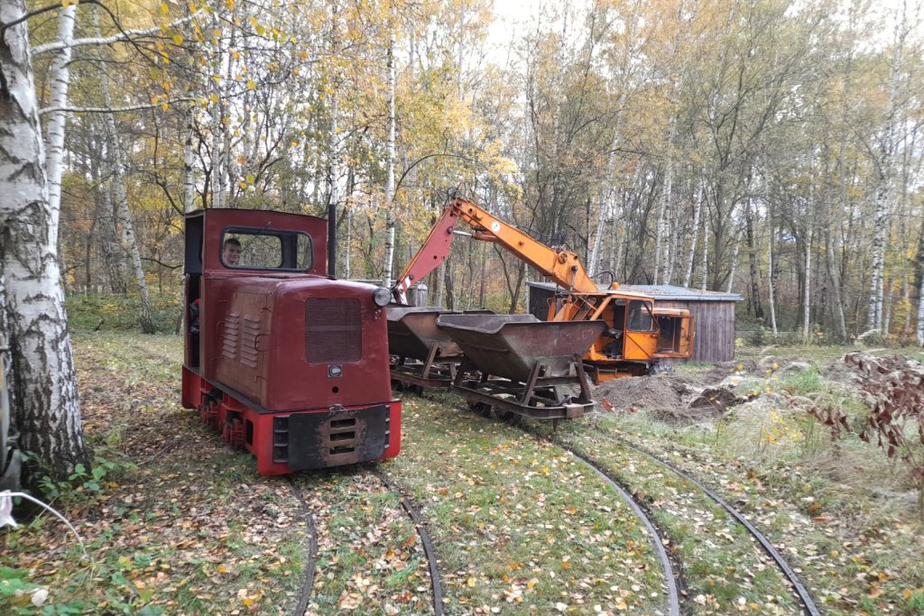 Beim 1. Feldbahn- und Nutzfahrzeugtreffen im Eisenbahnmuseum Chemnitz-Hilbersdorf waren wir mit unserem historischen Lkw S 4000 und der LKM-Lok vom Typ Ns 1 a zu Gast, welche hier gerade im Schaubereich Kiesgrube rangiert. Foto: G. Rolle, November 2025. Exkursion nach Freiberg