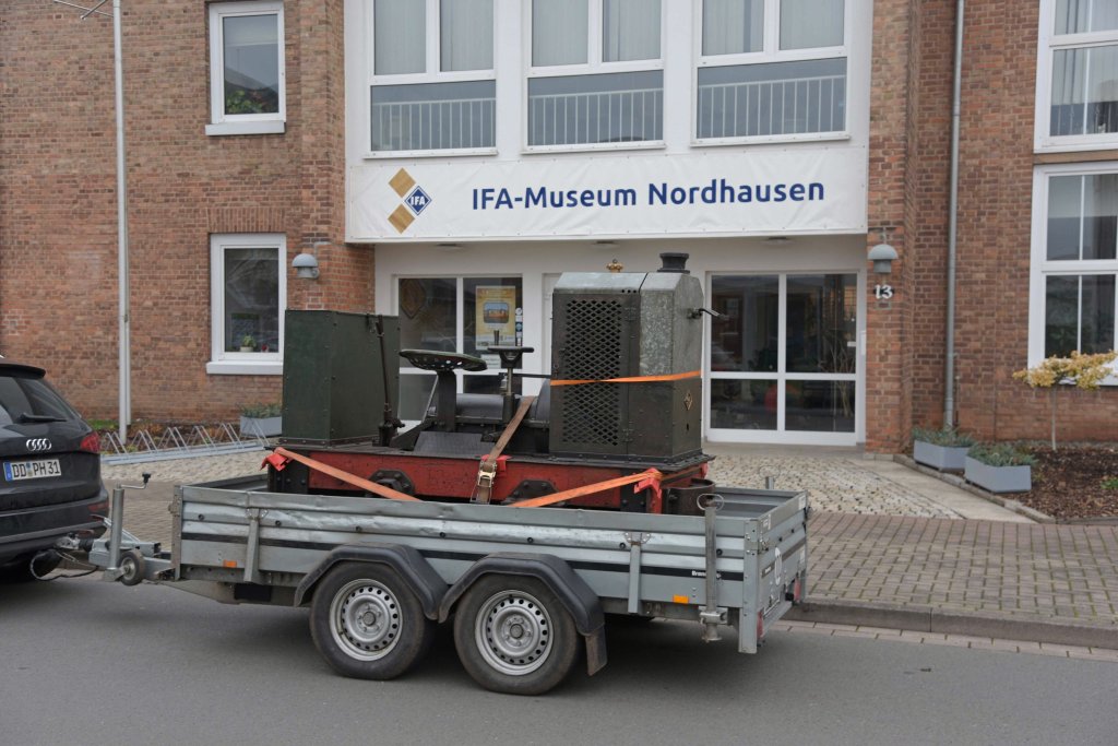 Ein Klassiker im Typenprogramm des Feldbahnherstellers Orenstein & Koppel war die „Type M“. Ausgestattet mit einem 7,5 PS starken Benzinmotor fanden diese Loks in den 1920er Jahren bis Anfang der 1930er Jahre einige Verbreitung in Europa und darüber hinaus. Obwohl Maschinen der „Type M“ einst auch in Ostdeutschland anzutreffen waren, hatte bisher noch kein Vertreter den Weg in unsere Sammlung gefunden. Umso erfreuter waren wir, als sich nun die Möglichkeit bot, eine weitgehend im Original- und Einsatzzustand erhaltene „Type M“ erwerben zu können. Die Lok mit der Fabriknummer 2995 aus dem Jahr 1928 stand nach mehreren musealen Stationen zuletzt als Leihgabe des Sammlers Peter Erk im IFA-Museum Nordhausen, von wo wir die Lok übernehmen konnten.