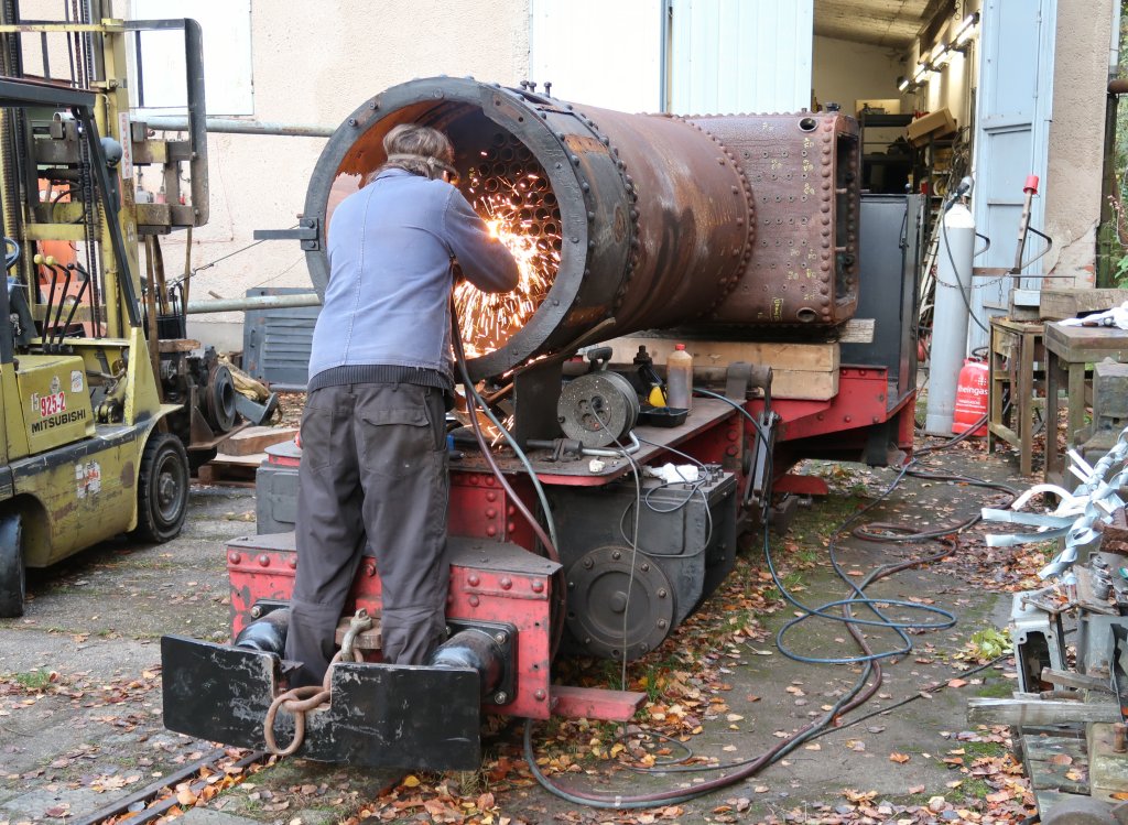 An der Henschel-Dampflok vom Typ Riesa wurden die Kesselrohre ausgebaut. Foto: M. Otto, 31.10.2025.