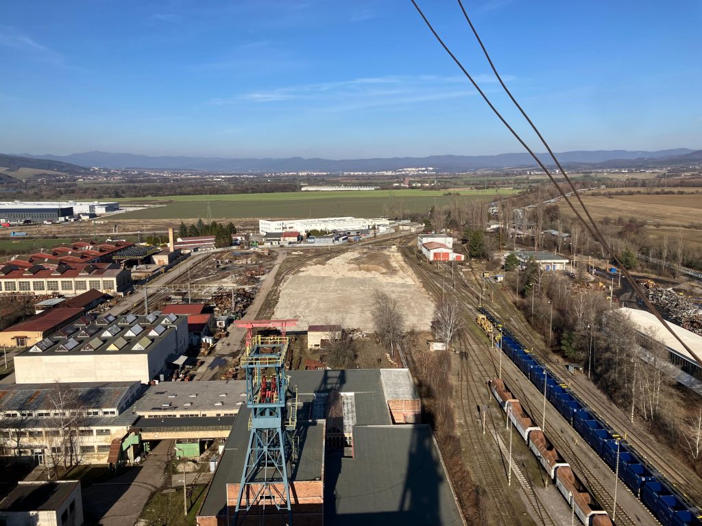 Blick über einen Teil der oberirdischen Bergwerksanlagen im slowakischen Nováky – einige Teilbereiche sind bereits abgerissen. Foto: J. Sommer, 26.2.2026.