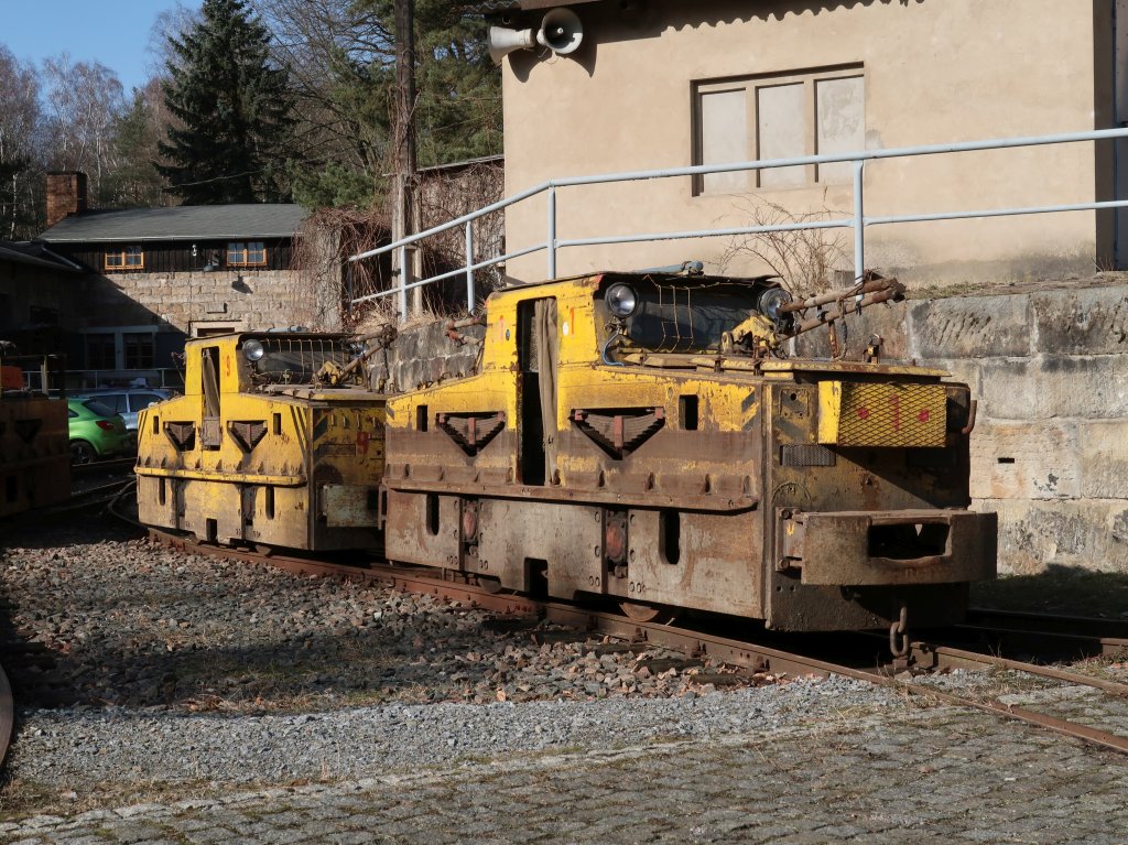 Einen Tag später kann sich die BND 30 schon in der Herrenleite sonnen. Das Fahrzeug ist weitgehend vollständig und war vermutlich bis ca. 2022 im Einsatz. Neben dem eigentlichen Führerstand besitzt die Lok an der Frontseite noch einen Mitfahrerstand. Foto: M. Otto, 27.2.2026.