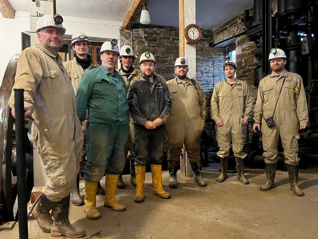 Im Januar besuchte eine Delegation unseres Vereins das Silberbergwerk „Himmelfahrt Fundgrube“ in Freiberg. Die Einfahrt erfolgte über die Schachtanlage „Reiche Zeche“. Auf den Spuren des erzgebirgischen Altbergbaus konnten wir einiges über die Technologien und Lebensweisen der Bergleute vor über 200 Jahren erfahren. Nach über fünf Stunden untertage durch flache Gänge und enge Schächte waren gerade die langgewachsenen Vereinsmitglieder am Ende des Tages froh, wieder gerade stehen zu können.